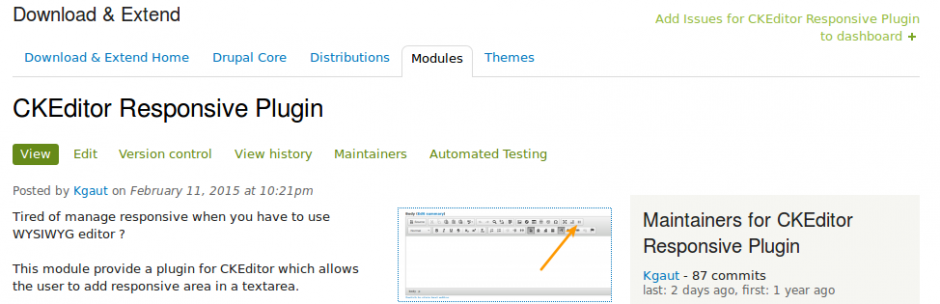 Le module est disponible sur sa page drupal à l'adresse suivante : https://www.drupal.org/project/ckeditor_responsive_plugin