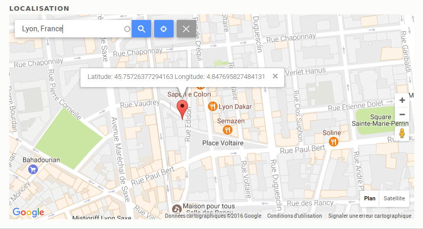 Geolocation field est un module Drupal 7 et 8 qui, comme son nom l'indique, permet d'ajouter un champs à ses types de contenus de type "Position GPS".