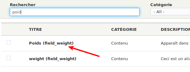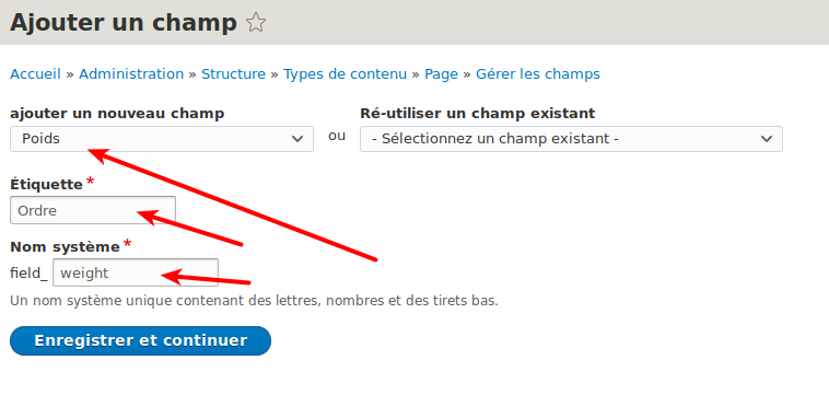 Première chose à faire, ajouter un champ de type "Poids" au type de contenu / entité que l'on souhaite trier :