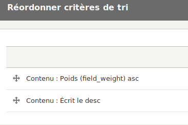 Réordonnez les critères de tri pour mettre le tri par poids en premier :