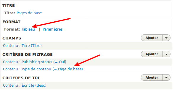 Il faut utiliser le format "Tableau" et bien penser à limiter au type de contenu que l'on souhaite trier :