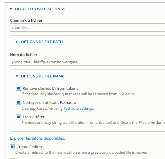 Ce module permet de gérer plus finement les fichiers uploadés dans les champs « files » : les renommer en fonction du nom du conteneur (ou tout autre jeton), translittérer, échapper les caractères spéciaux...
