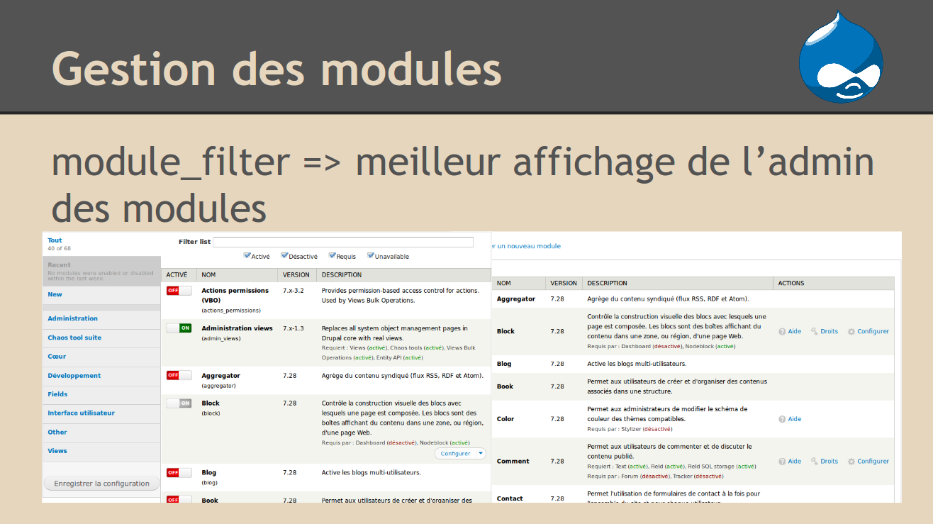 - Objectifs : Comprendre le paradigme posé par Drupal
