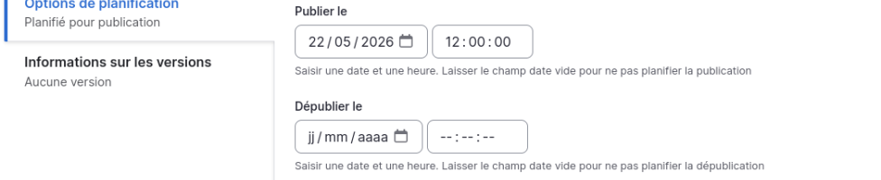 Scheduler est un module drupal qui permet, pour un contenu, de définir une date de publication et/ou une date de dépublication.
