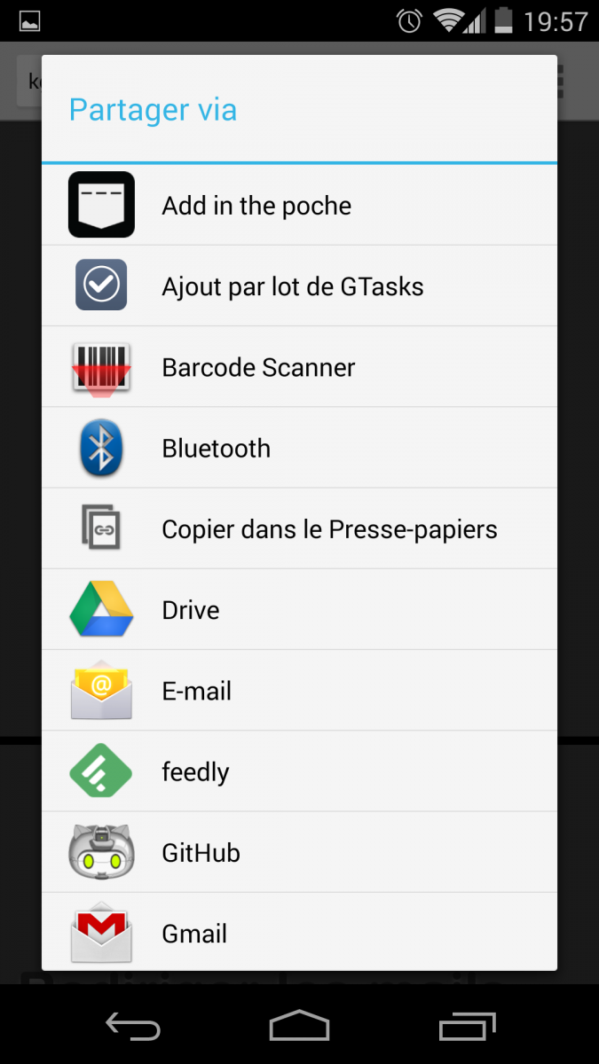 Comme ici sous Android via le menu "Partager" :