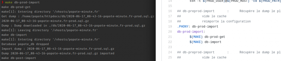 - Récupération du dump de base de données le plus récent en prod (via db-prod-get)