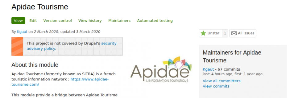 La page du module sur drupal.org : https://www.drupal.org/project/apidae_tourisme