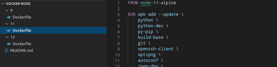 Pour commencer j'ai créé un dépot github (https://github.com/kgaut/docker-node) visant à contenir mes images, vu que j'avais besoin de plusieurs images (une par version de node) j'ai choisi d'utiliser des sous-dossiers pour chaque version majeure de NodeJS.