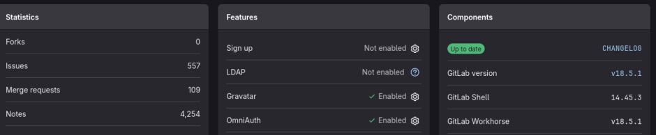 À noter, il faudra impérativement installer sur le nouveau serveur une version de gitlab identique à celle de l'ancien serveur, pour la trouver, rendez-vous sur le pannel d'administration et vous trouverez l'information en bas à droite :