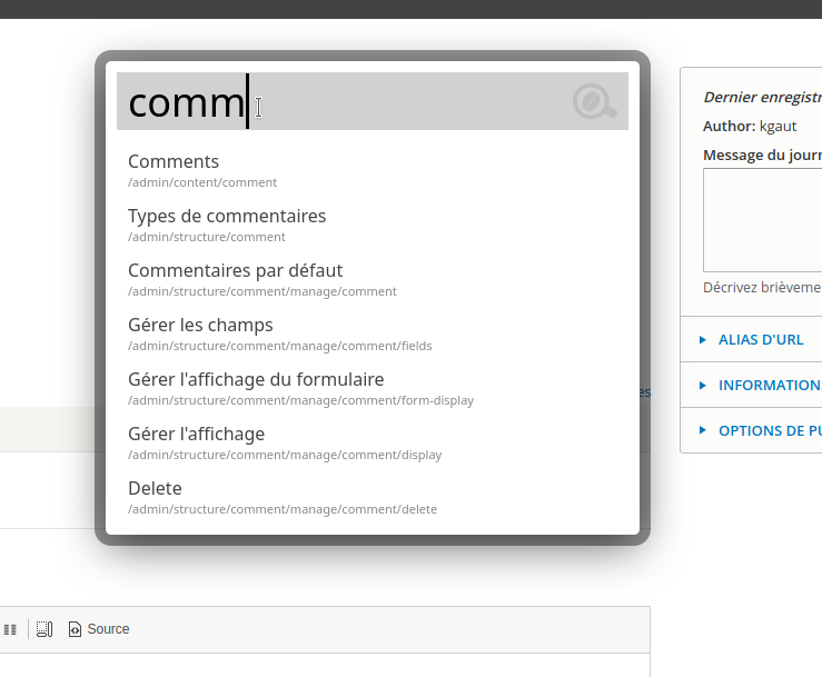 Le module Coffee permet aux administrateur de déclencher via un raccourci clavier (alt+k ou alt+d) un petit moteur de recherche qui indexe tous les éléments du menu d'administration.