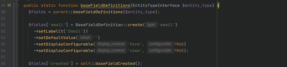 Voici comment définir une propriété (basefield) « e-mail » sur un type d'entité.