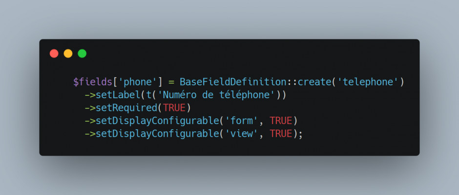 $fields['phone'] = BaseFieldDefinition::create('telephone')