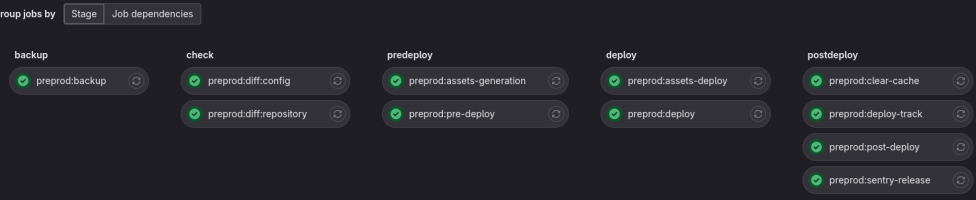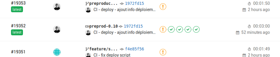Pour un projet, j'ai du mettre en place une stratégie de déploiement automatisée avec entre autres un déploiement sur un serveur de préproduction que lors de la création d'un tag preprod-x.x exemples : preprod-0.1, preprod-0.2, preprod-1.0...